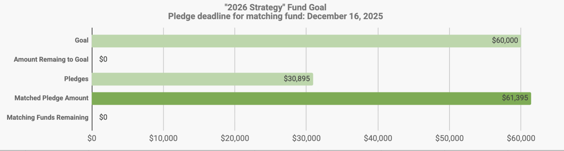 Seven generous ministry partners pledged $30,500 toward the 2026 plan as a matching fund. Every new gift or pledge made by midnight Tuesday, December 16, 2025 will be doubled up to $30,500.